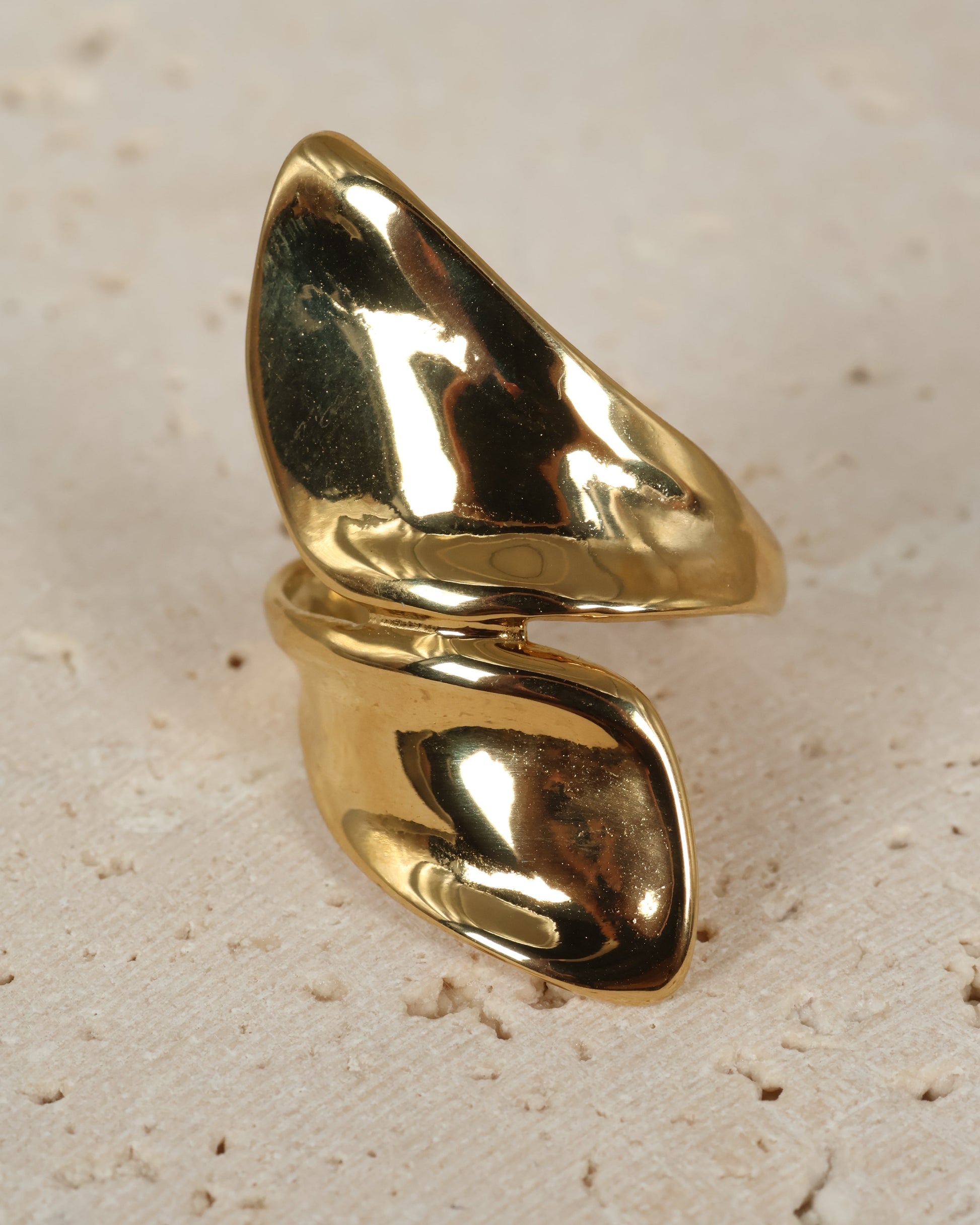 Minimalist golden ring featuring a sleek, wave-shaped design